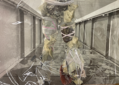 in the new piece (A hard baby), the ceramic armor I wore on my